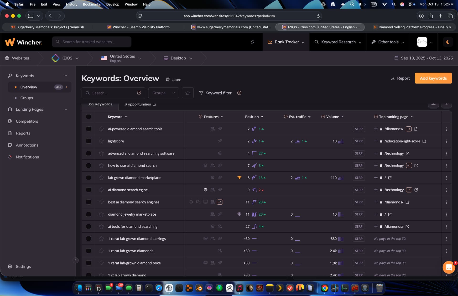 I have been working on a very large project on replit as some of you know. I wanted to show some of the progress including performance of the 600k diamonds i currently have imported and am doing active real-time management of.