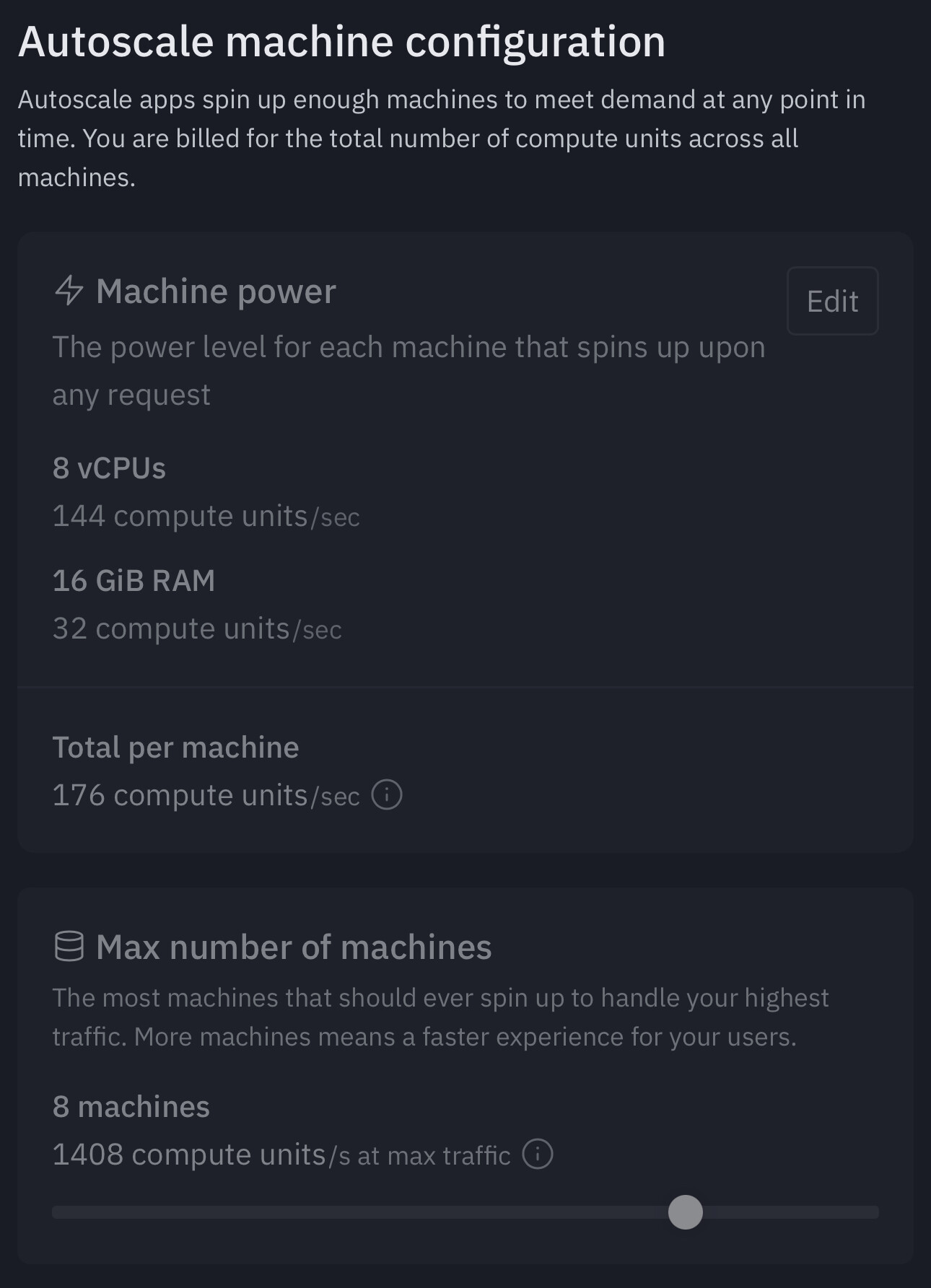 Typically Autoscale(4 vCPU / 8 GiB RAM / 3 Max)